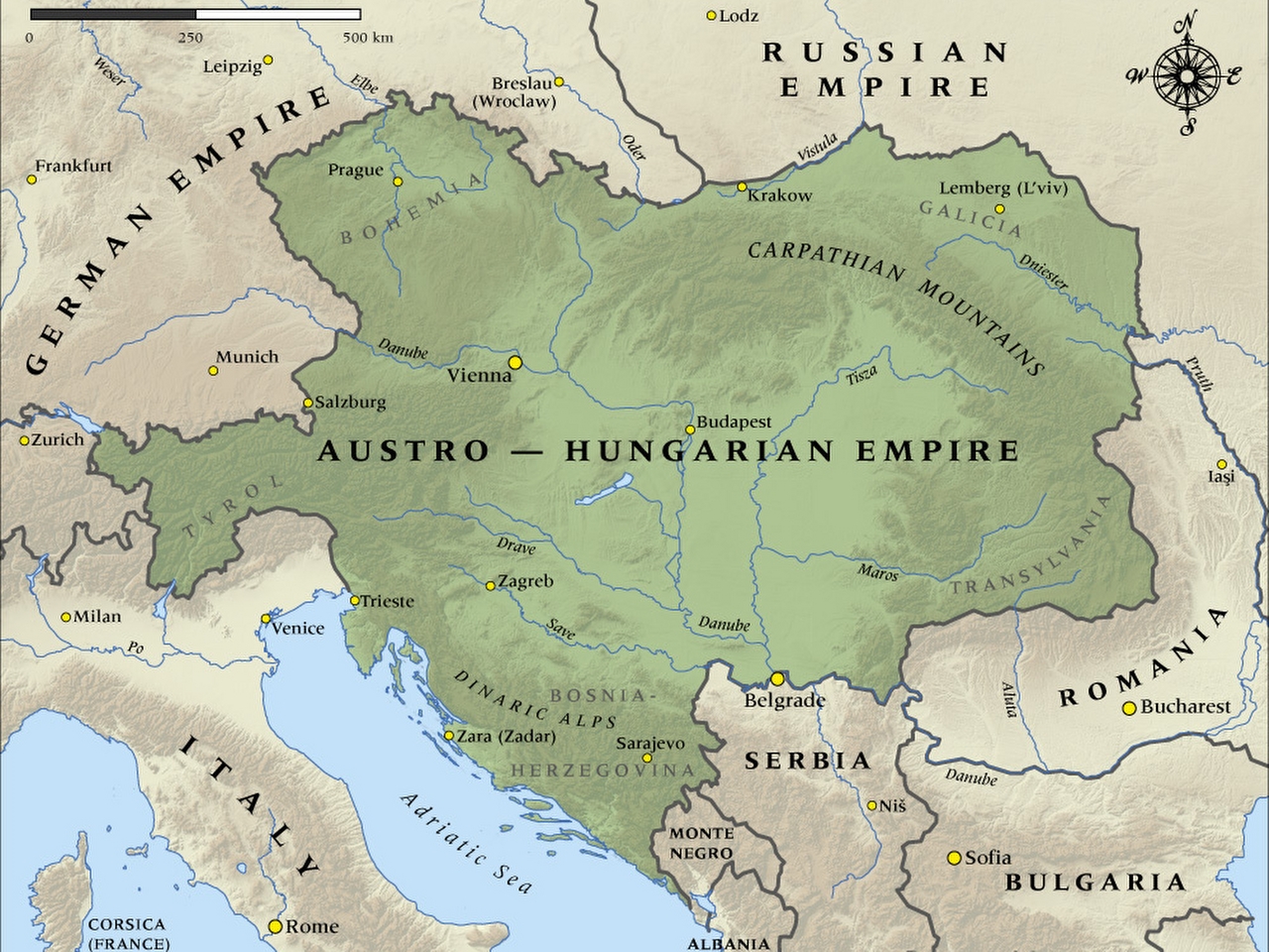 Avusturya-Macaristan İmparatorluğu: Habbsburglar imparatorluğunun ikili monarşi halinde örgütlendiği 1867-1918 arasındaki dönemde taşıdığı ad. Avusturya-Macaristan İmparatorluğu, Avusturya imparatorluğu (Avusturya, Bohemya, Moravya, Silezya, Galiçya, Bukovina, Slovenya, Dalmaçya, Trentino ve Görice), Macaristan Krallığı (Macaristan, Slovakya, Erdel, Banat, Hırvatistan, Slavonya) içeriyordu; bu topraklara 1908'de, ortak toprak olarak ilhak edilen Bosna-Hersek de eklendi. İkili monarşide Avusturya imparatoru, Macaristan'da da yürütme gücünün başıydı. Avusturya Macaristan İmparatorluğu, Birinci Dünya Savaşı'nda yenilince, 1919'da imzalanan Saint-Germainen Laye ve 1920'de imzalanan Trianon anlaşmalarıyla, imparatorluk parçalandı ve topraklarında bir dizi yeni devlet kuruldu: Avusturya, Macaristan, Çekoslovakya. Geri kalan toprakların bir bölümü, Polonya, Romanya ve İtalya'ya verildi. Hırvatlar, Sırplar ve Slolvenlerin yaşadığı topraklarsa, Sırbistan ile Karadağ arasında bölüştürüldü (1929'da Yugoslavya devletini oluşturdular).