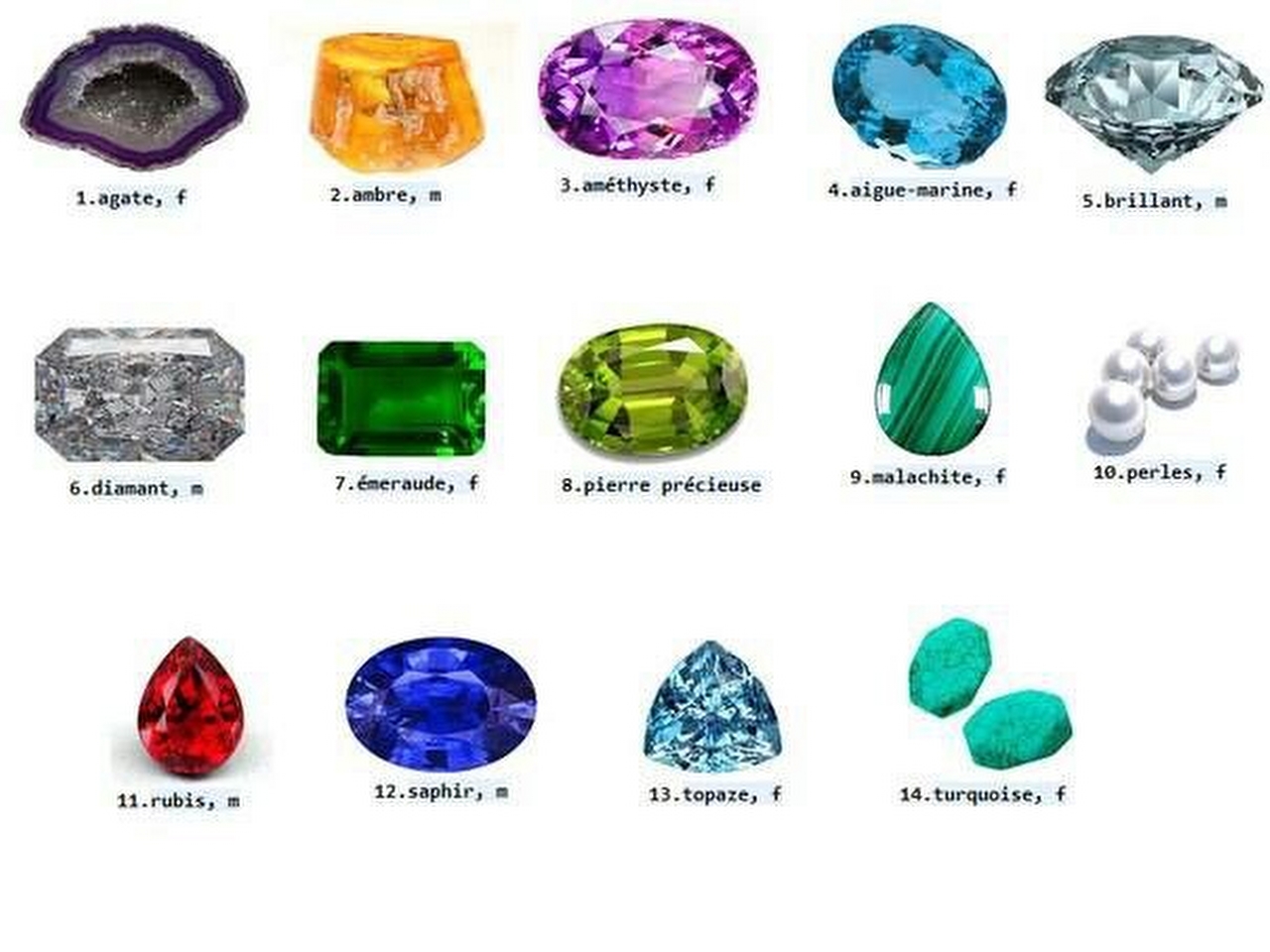 Güzel yemyeşil rengi ile zümrüt ve rengi gökyüzünü andıran gökzümrüt beril mineralinin iki ayrı çeşididir. Zümrüte rengini veren krom oksittir. Opal, yeşim, spinel, krizoberil, topaz ve mor yakut (ametist) öteki değerli taşlar arasındadır. Bu taşlarda renklerin çeşitliliği olağanüstüdür. Yeşim genellikle yeşil olarak bilinir ama beyaz, kahverengi, san, gri ve leylak rengi de olabilir. Bu ıenk çeşitliliği birçok başka değerli taşta da vardır. Kimi taşlar ısıtıldığında renk değiştirir; bu yöntemle sarı topaz tatlı bir pembeye dönüşür.